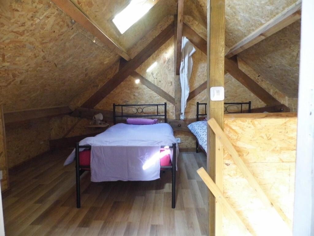 À l’étage, une mezzanine avec lit double ou lits jumeaux (selon disposition) crée un espace intime et chaleureux.